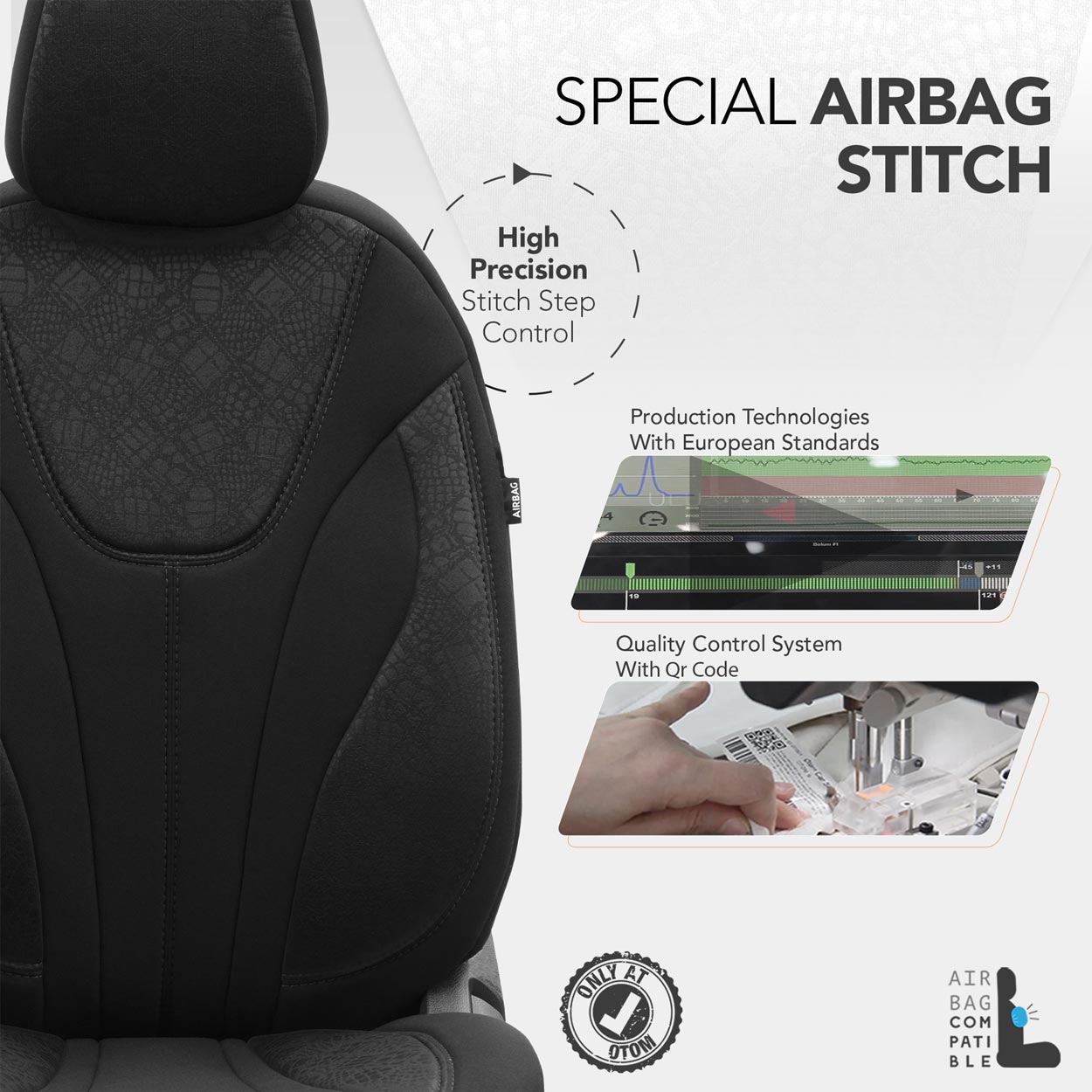 Husele standard au o cusătură AIRBAG certificată , ceea ce le face potrivite pentru mașinile cu airbag-uri laterale în scaune, precum și pentru scaunele standard. Datorită utilizării unei cusături speciale, acestea acoperă complet scaunele fără a perturba funcționarea AIRBAG-urilor. Desigur, această soluție a fost testată și certificată de mai multe ori .